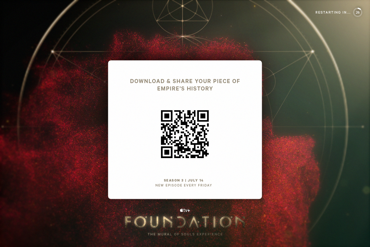 I wanted to celebrate the new season of Foundation on Apple TV+ by giving fans the opportunity to immerse themselves right into the world of the show in an interactive experience utilizing a Kinect sensor to put fans into the show’s iconic title sequence