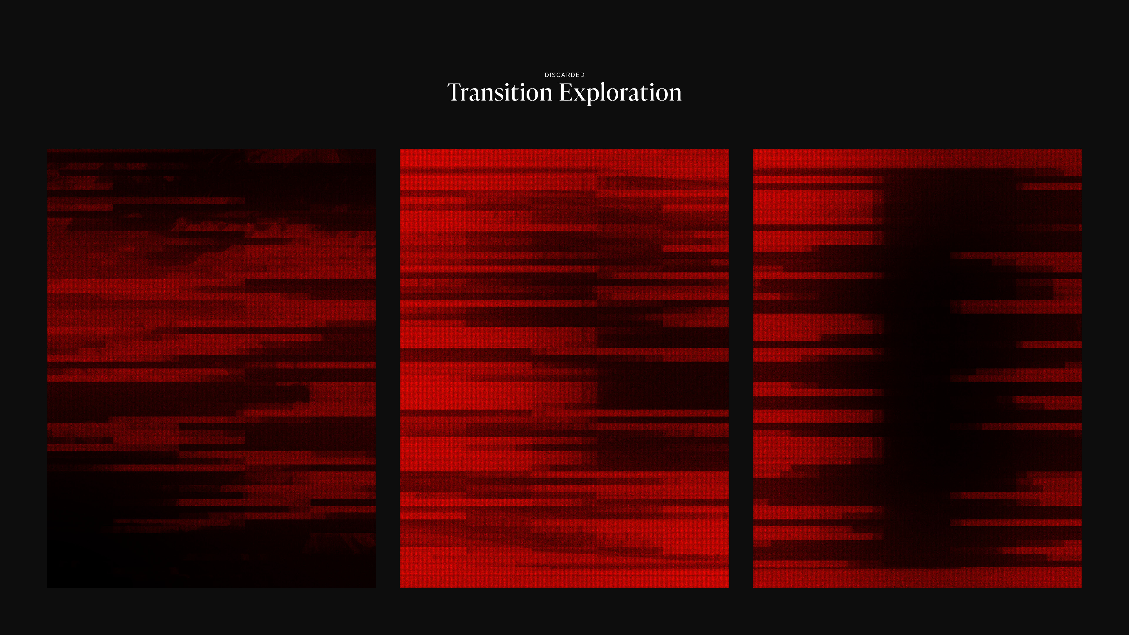 I helped explore some design and animation tests using still photography and motion graphics text.